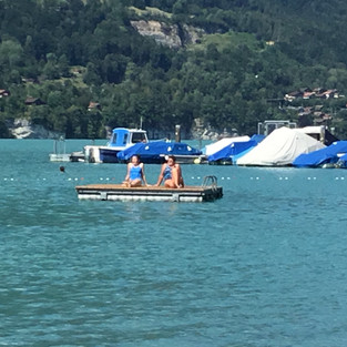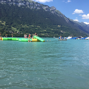After a much needed night’s sleep, we made our way up Harder Kulm on a funicular. At the top, we could see the whole of Interlaken. We ate our packed lunch on the way back down the mountain. We then got the boat to Isetwald and then another boat to Bönigen. At Bönigen there was a pool and a place to swim in the lake with giant inflatables including slides and trampolines.we got the bus back from the pool and ate dinner at the hotel.